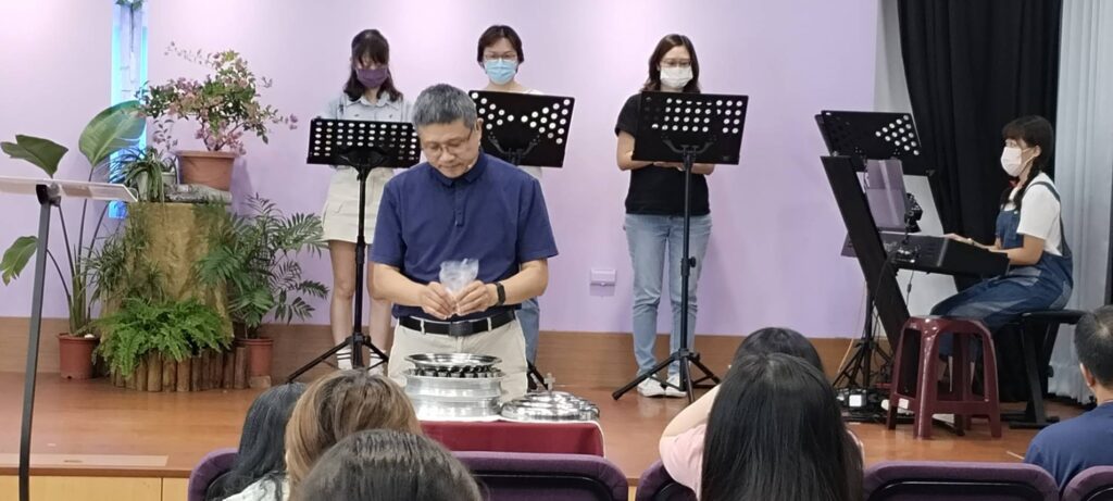 講道結束後,黃牧師也主持了聖餐禮,帶領弟兄姊妹一同記念主耶穌基督的犧牲與救恩,會眾懷著感恩與敬畏的心領受餅與杯。