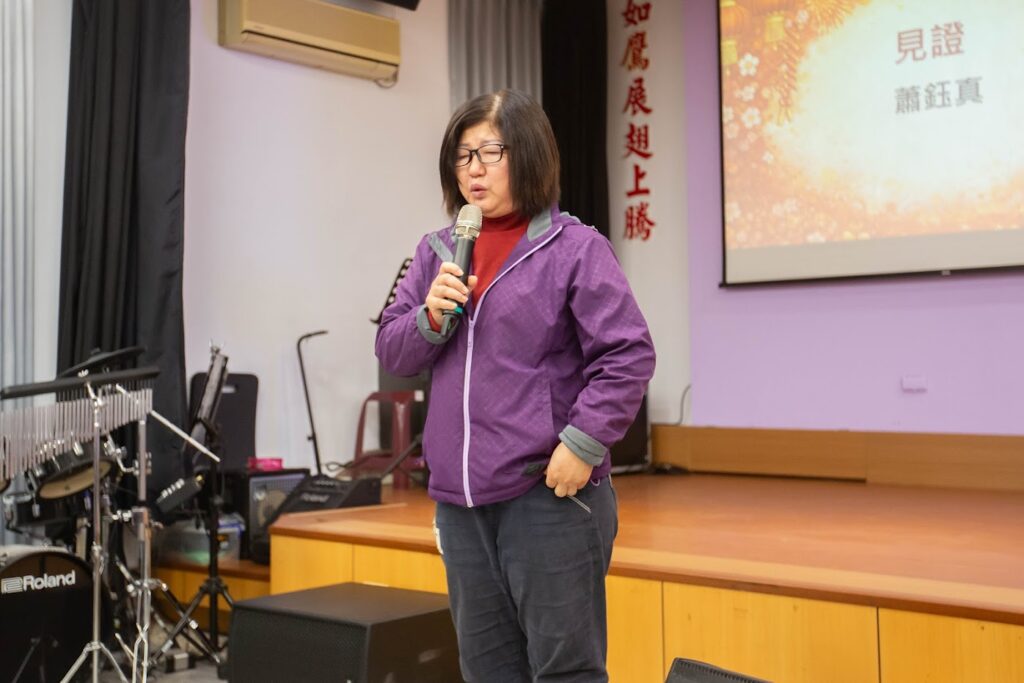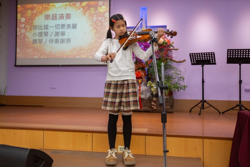 信息之後,鈺真分享個人經歷,見證在困難中如何經歷神的帶領。接著謝原與謝寧以樂器演奏〈祢比這一切更美麗〉,悠揚的旋律成為全體會眾對神的敬拜回應。隨後,素琴姐上台分享感恩見證,述說神在家庭與服事中的恩典,使聚會在溫暖的氛圍中進入尾聲。