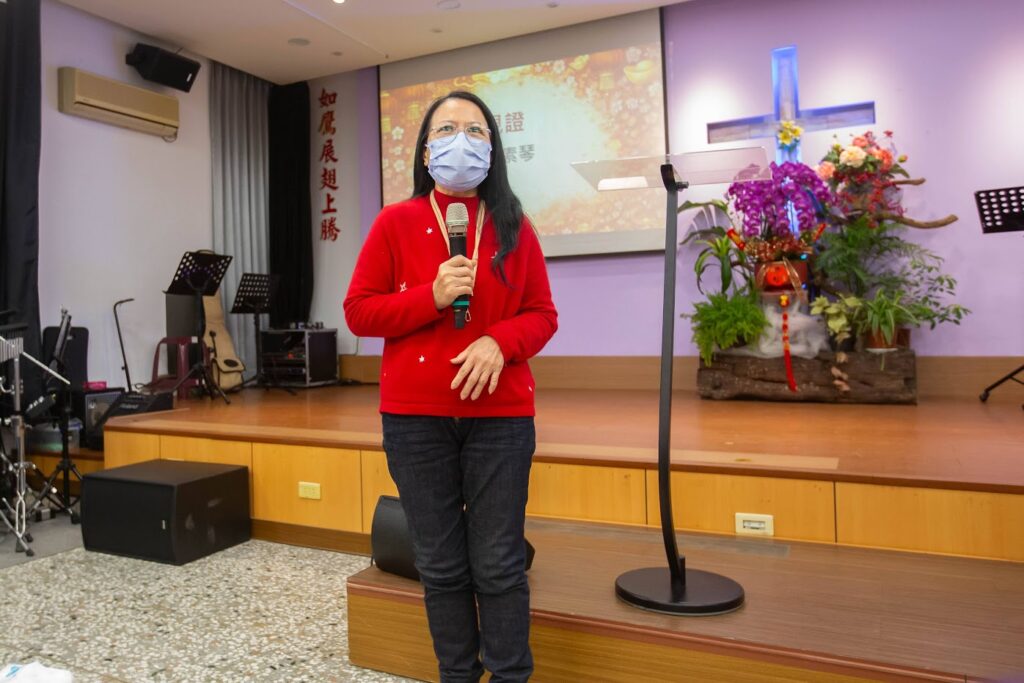 聚會一開始,由鳳萍帶領兩首MV敬拜詩歌,全體會眾同心高唱,在讚美中宣告神在新的一年仍然掌權。詩歌之後,彥伶上台分享見證,述說神在過去一年中的帶領與保守,鼓勵弟兄姊妹在高山低谷中都不忘數算主恩。