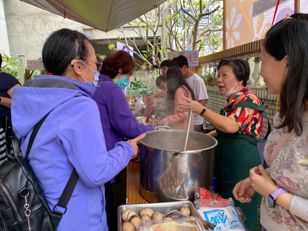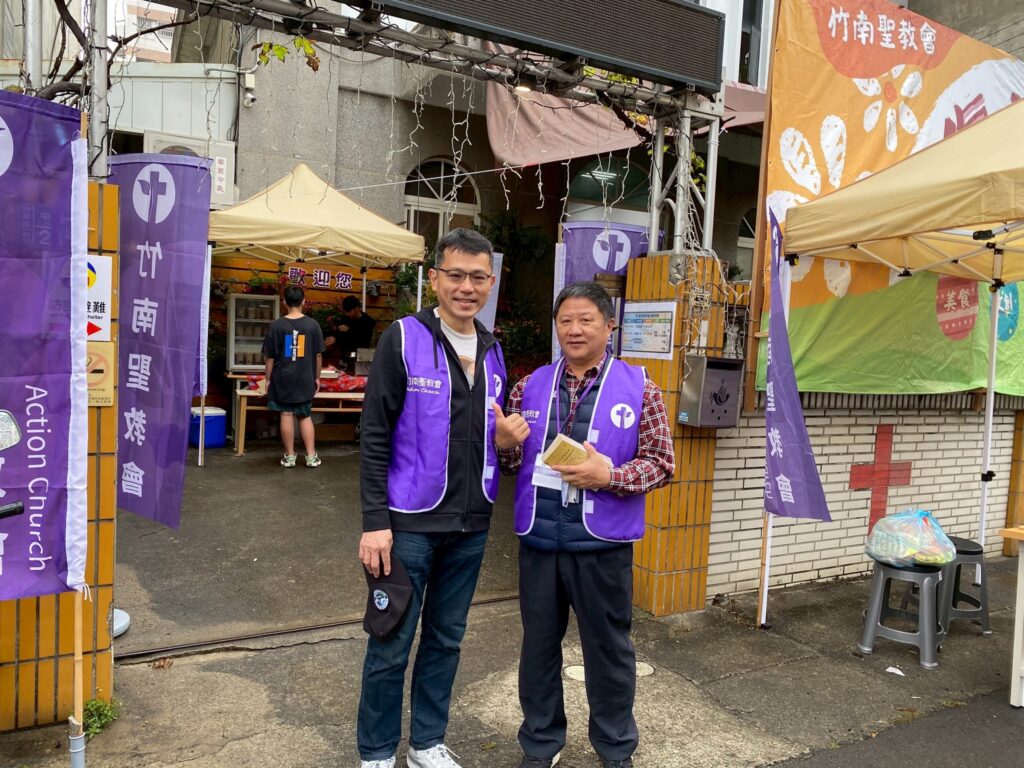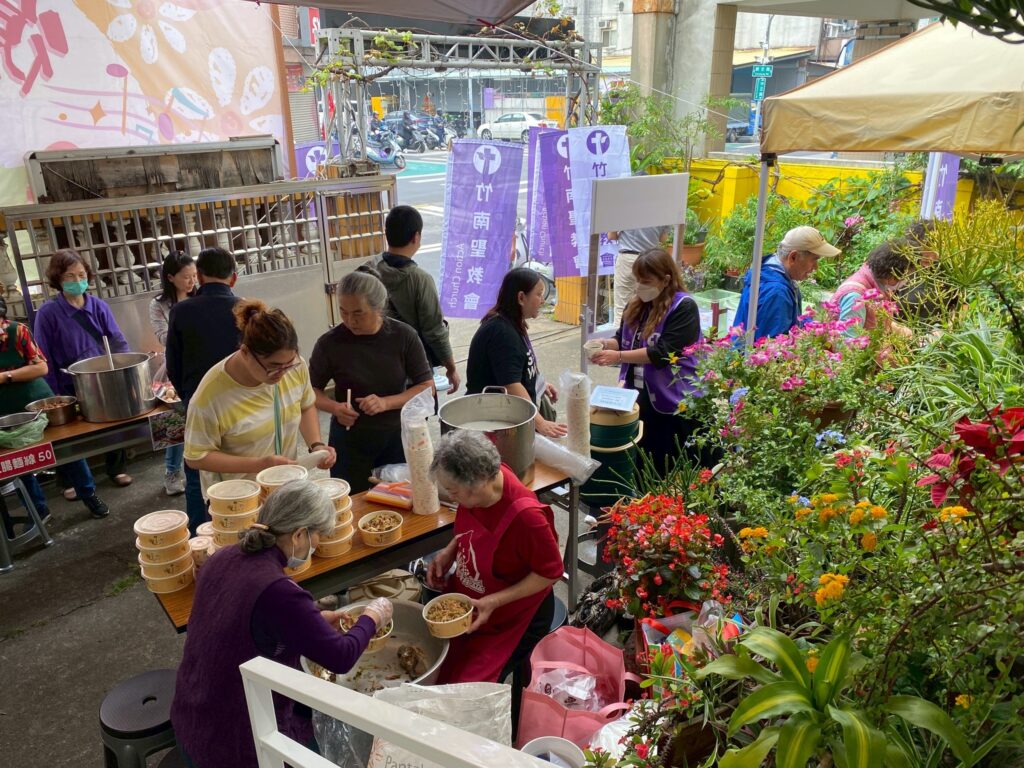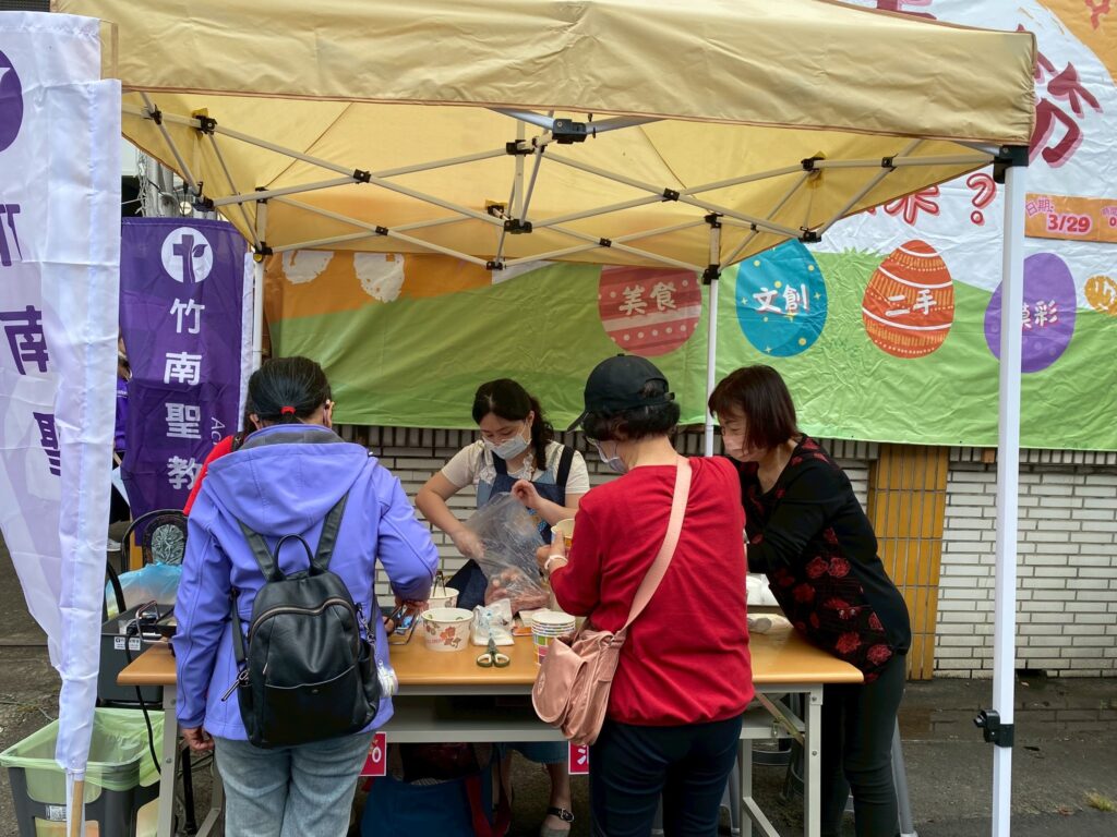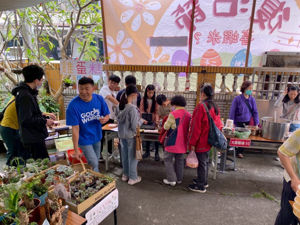 值得一提的是,這次市集活動弟兄姊妹參與非常踴躍,各式攤位內容相當豐富且頗具特色,從文創商品、二手優質特選、多肉植物,到各式美食應有盡有,包括大腸包小腸、五餅二魚雞蛋糕、大腸麵線、古早味油飯、涼麵、炒麵、西米露、炸物、茶葉蛋等,幾乎都是弟兄姊妹親手準備與製作。整個庭院充滿香氣與笑聲,不僅吸引社區朋友停下腳步,也展現了教會同工們的創意與熱情。許多人不禁感嘆,竹南聖教會真是人才輩出,各樣恩賜在服事中被看見,令人感謝神的帶領。